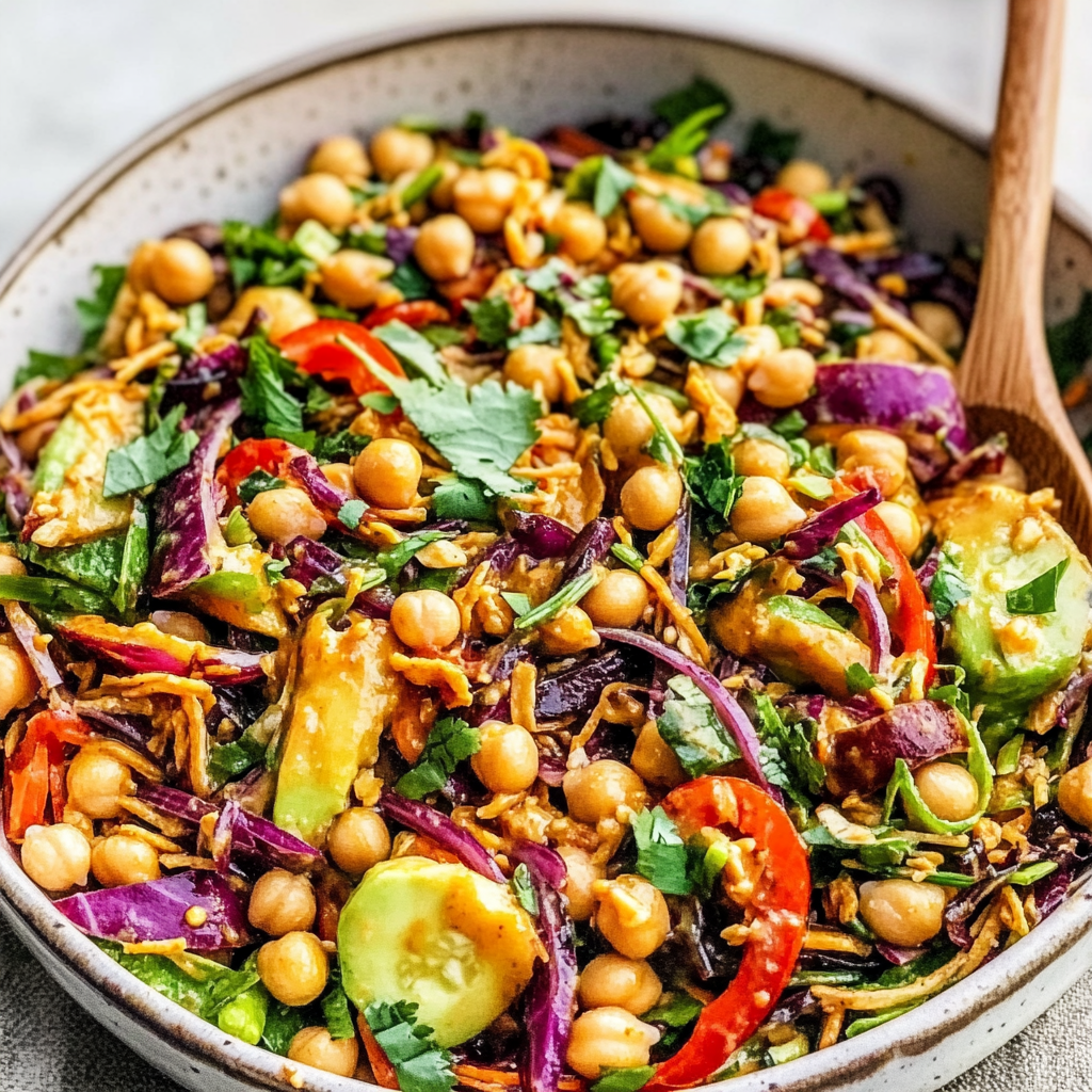 Beautiful vegan chopped Thai-inspired chickpea salad with a rainbow of veggies and a super flavorful curry peanut dressing. This Chopped Thai-Inspired Chickpea Salad with Curry Peanut Dressing is perfect for …
